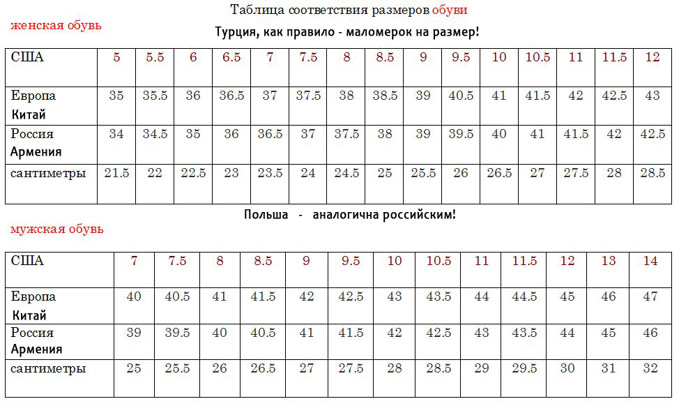 Россия | 39 | 39.5 | 40 | 40.5 | 41 | 41.5 | 42 | 42.5 | 43 | 43.5 | 44 | 45 | 46 | 47 | 48 |